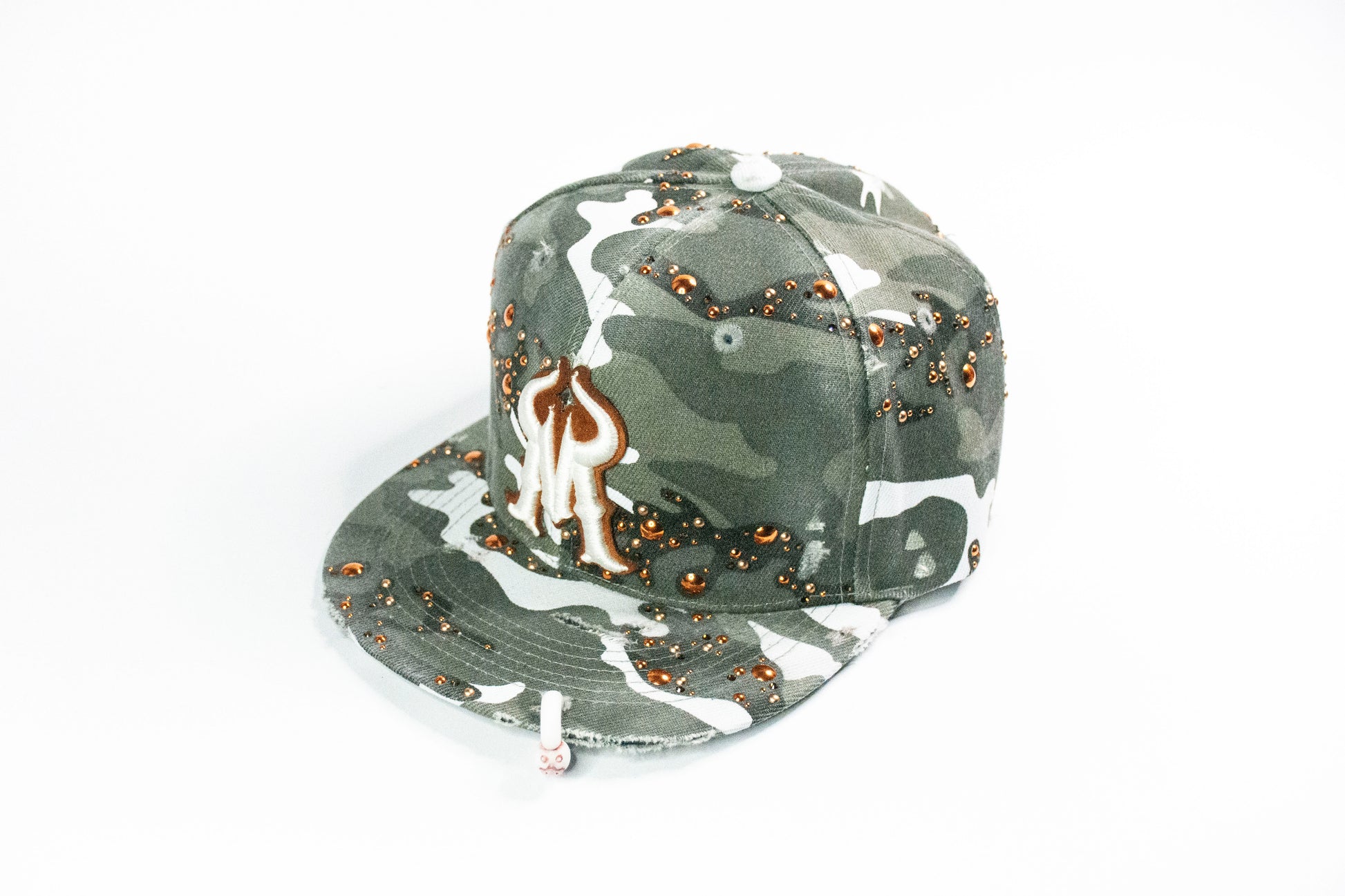 A bold reinterpretation of the classic camouflage cap — defined by lived-in textures and details that tell a story of research and craftsmanship.